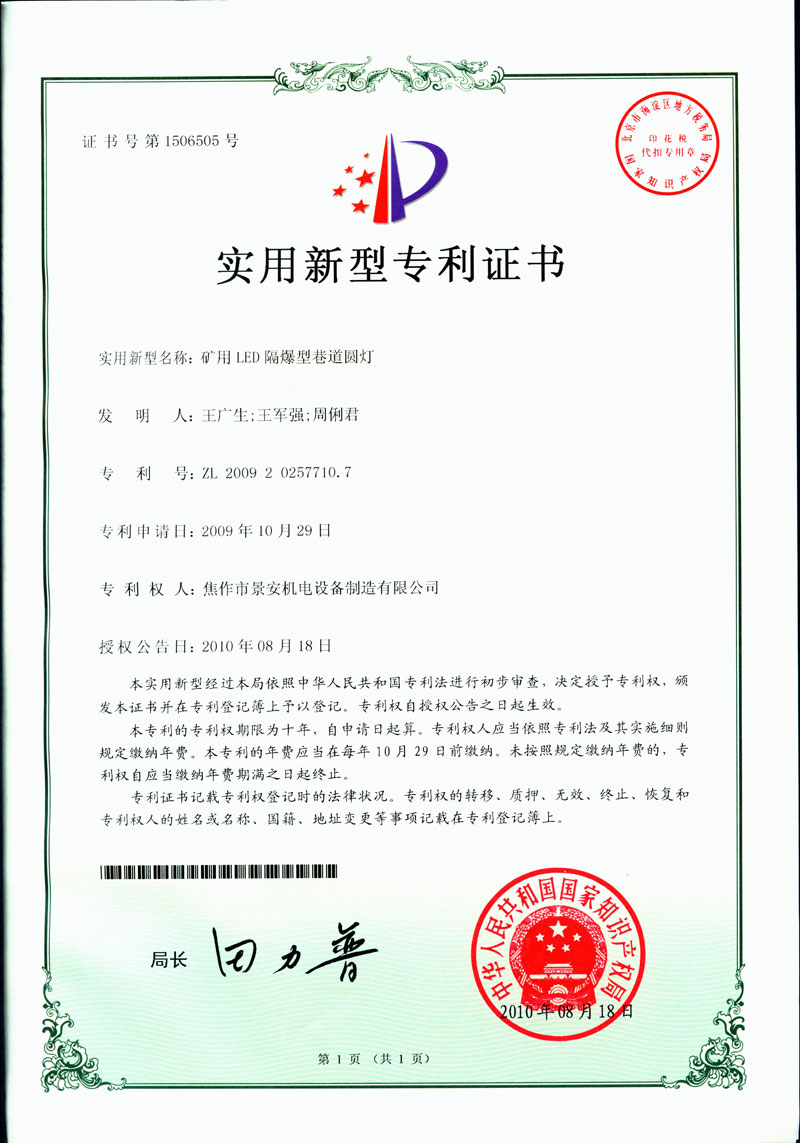 焦作景安公司始終堅(jiān)持“以科技為先導(dǎo),以市場(chǎng)為導(dǎo)向”的發(fā)展戰(zhàn)略,不斷進(jìn)行新產(chǎn)品的研制和開(kāi)發(fā),在國(guó)家“六五”到“九五”期間,承擔(dān)和參與了國(guó)家多項(xiàng)科技攻關(guān)項(xiàng)目。并被中國(guó)電器工業(yè)協(xié)會(huì)評(píng)定為“質(zhì)量可信產(chǎn)品”。特別是在礦用防爆燈領(lǐng)域,礦用隔爆型半導(dǎo)體(LED)照明燈具,2008年列入國(guó)家火炬計(jì)劃,獲2009年河南省工業(yè)和信息化廳的科技成果二等獎(jiǎng),并擁有多項(xiàng)國(guó)家專(zhuān)利。